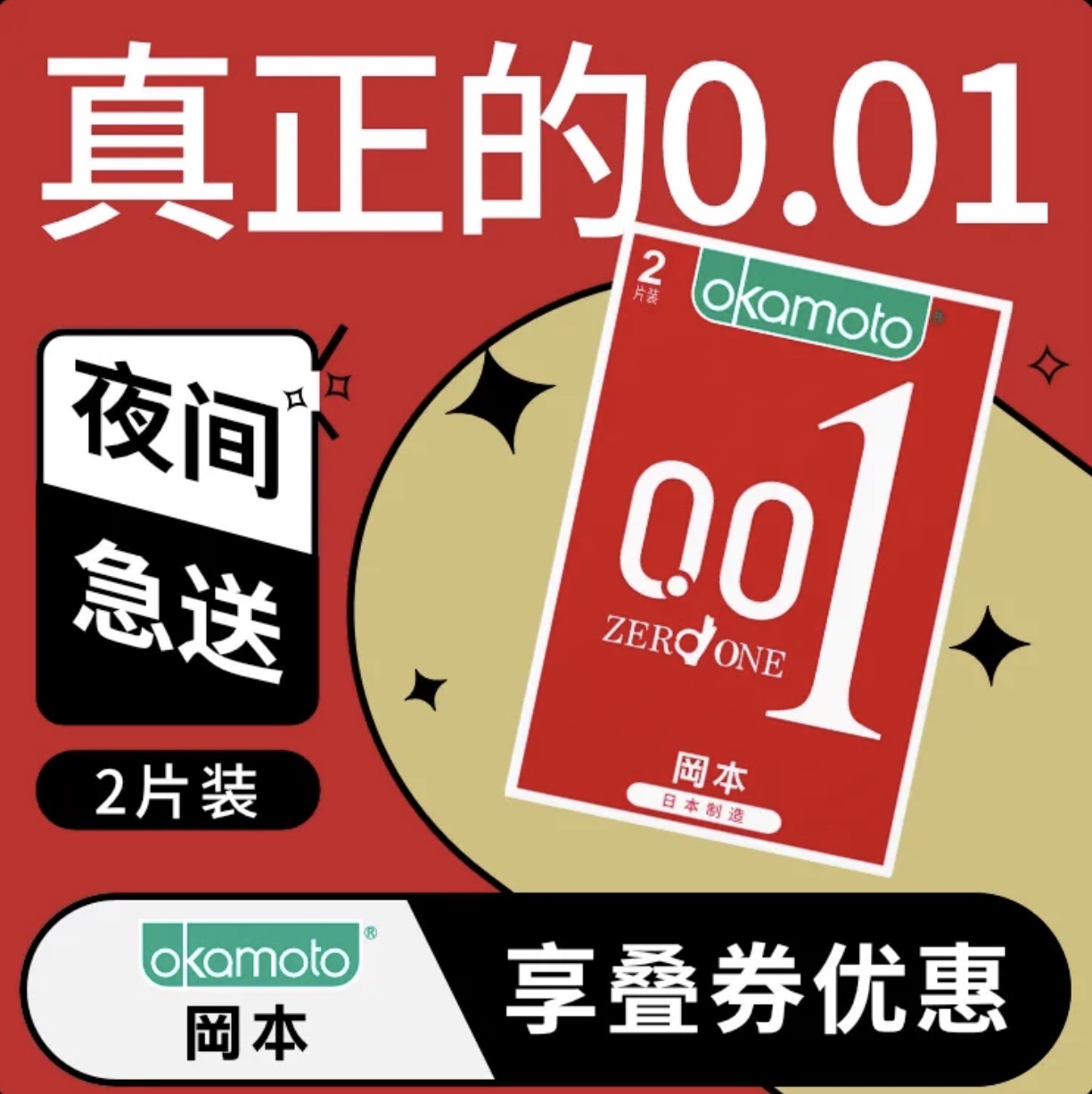 冈本001安全套-0.01超薄避孕套 2只/盒