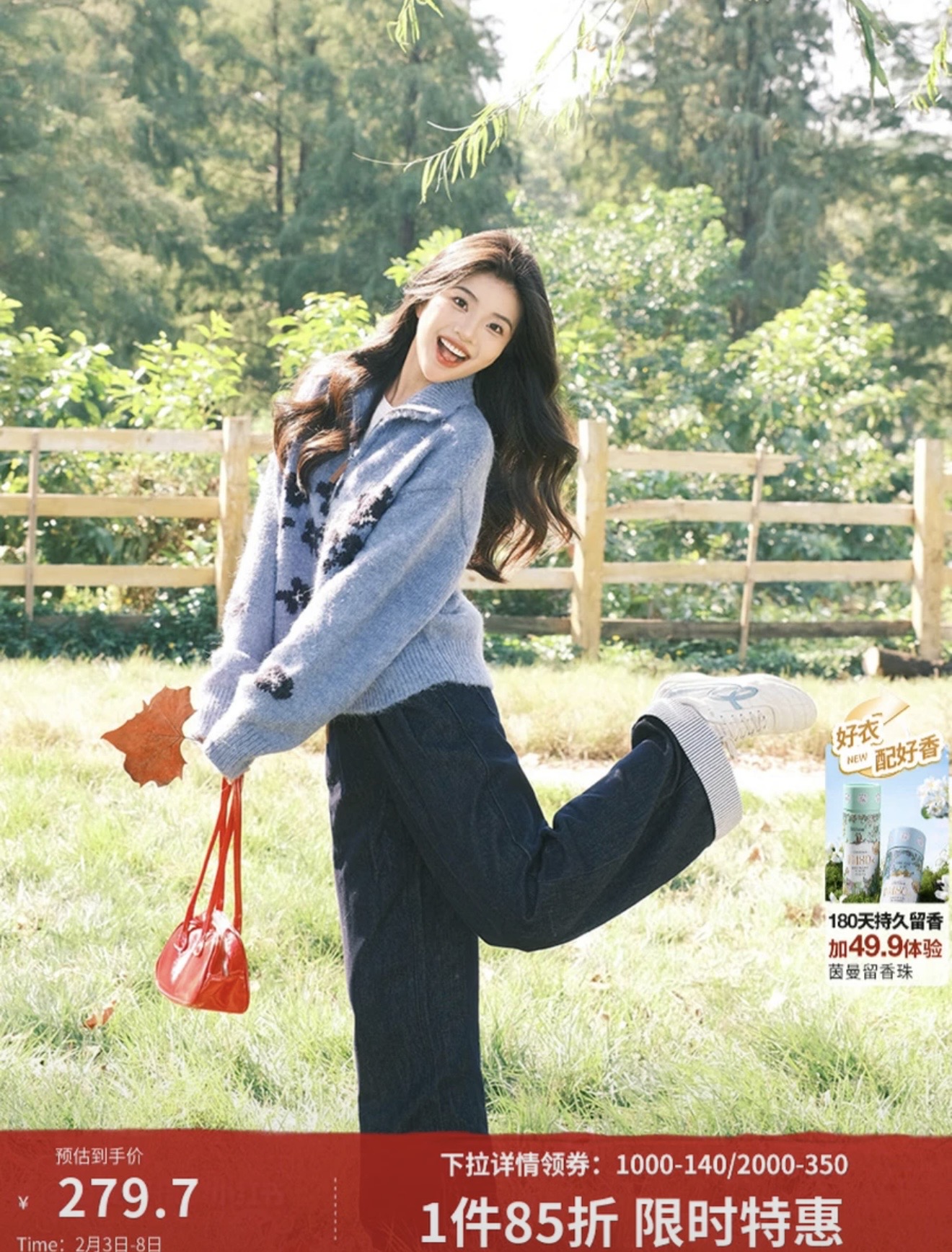 茵曼(INMAN)【加绒裤】2026春季女装新款莱赛尔棉原色翻边阔腿牛仔裤宽松裤子【S】码