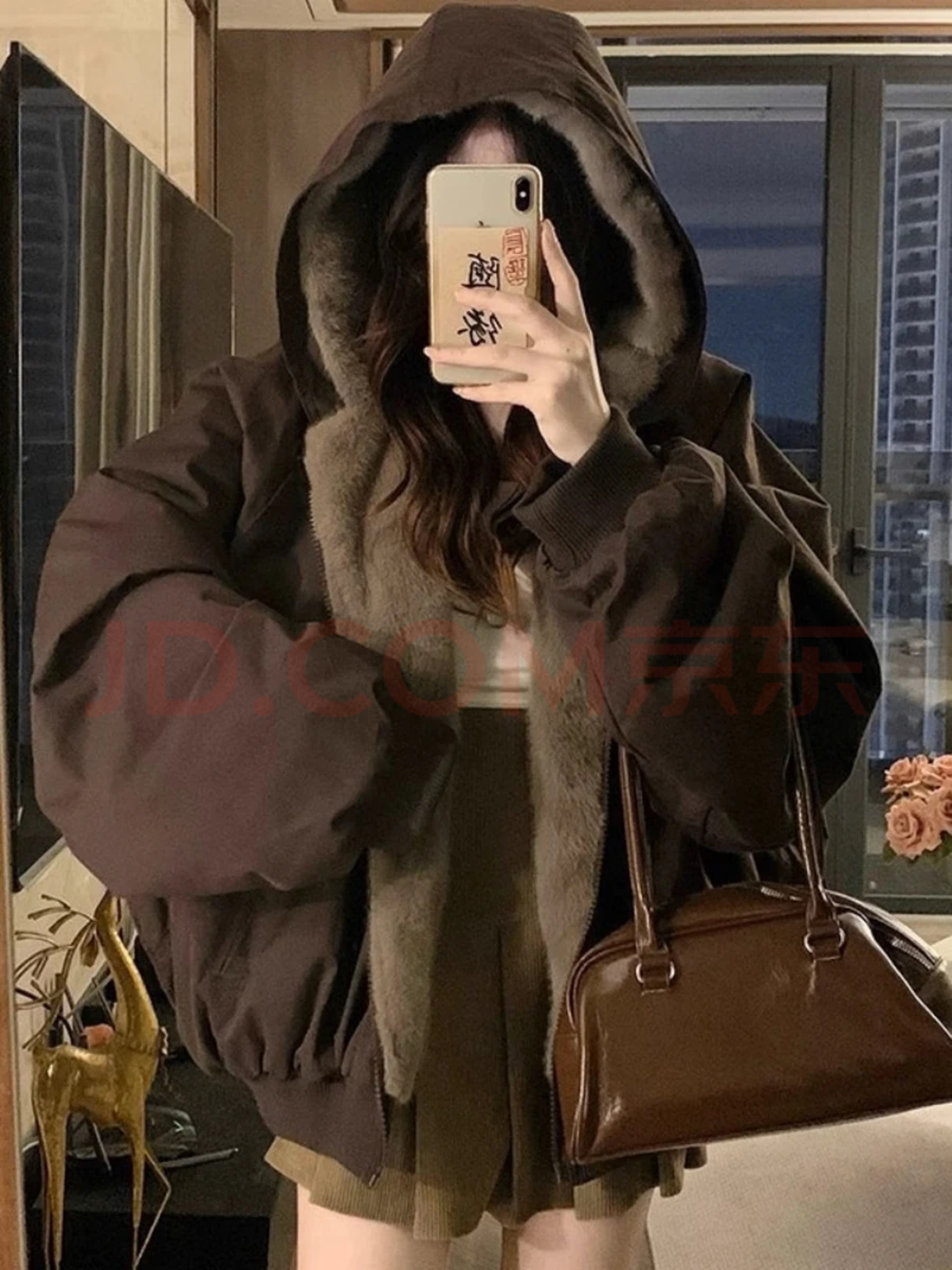 衣然呈品复古座山雕正反双面穿棉服女士冬季加绒保暖宽松百搭连帽棉衣外套