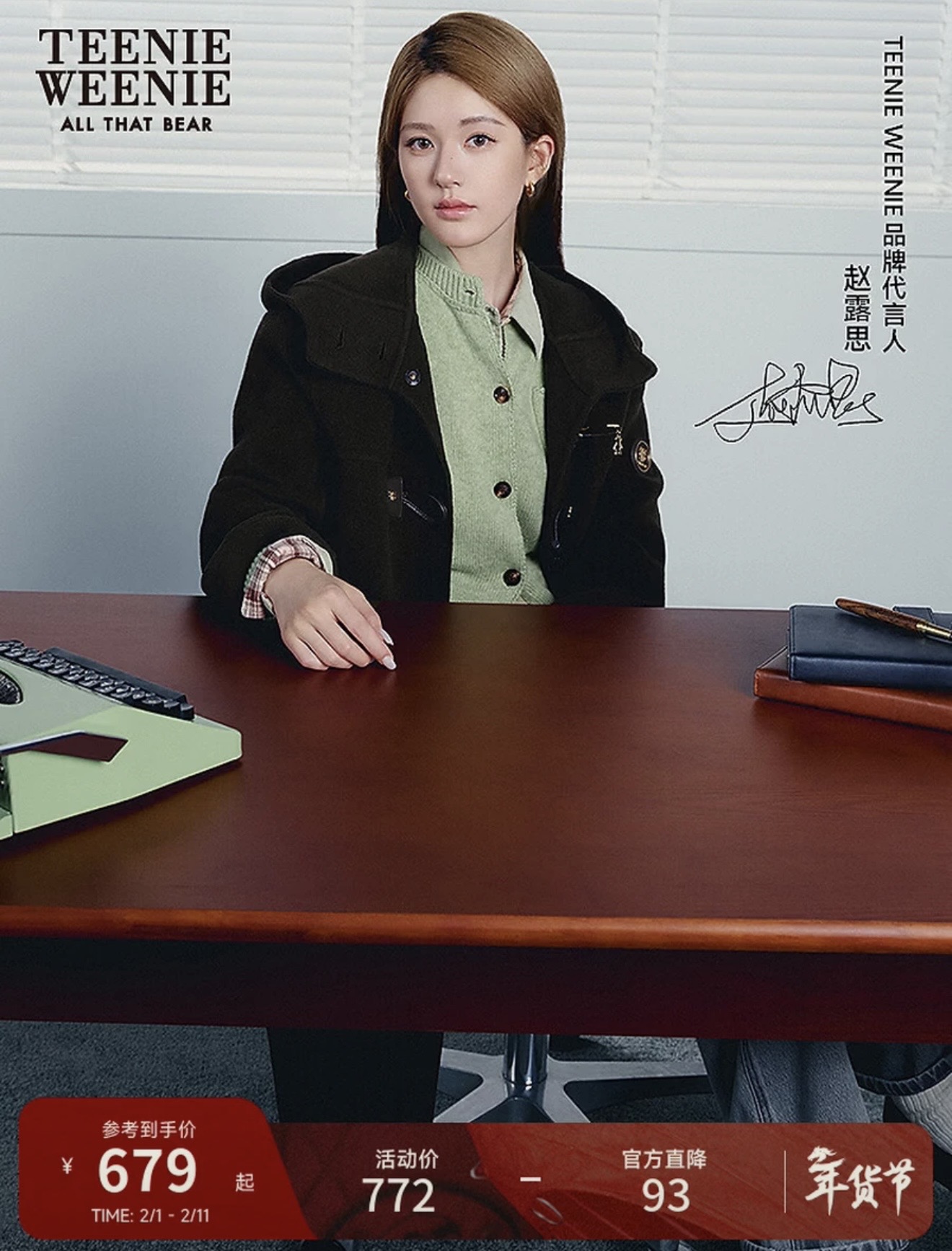 Teenie Weenie【赵露思同款】小熊女绵羊毛针织开衫2025秋新款毛衣【S】码