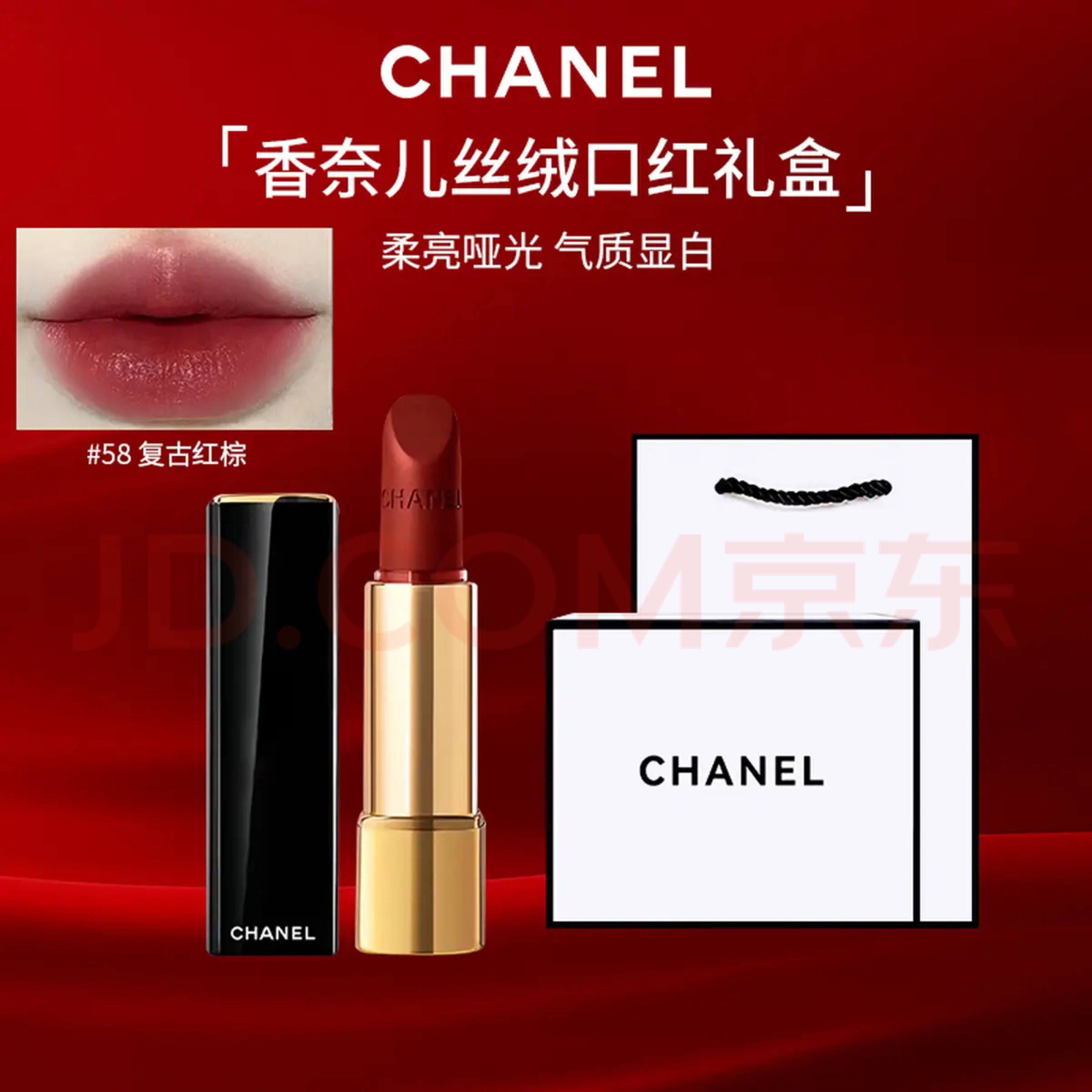Chanel香奈儿口红炫亮魅力丝绒58#57#唇膏口红套装送老婆女友情人节礼物 58#复古红棕色
