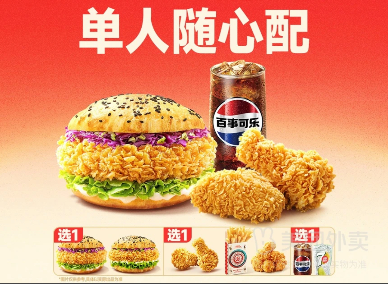 【单人随心配】自选汉堡+自选小食+自选饮品